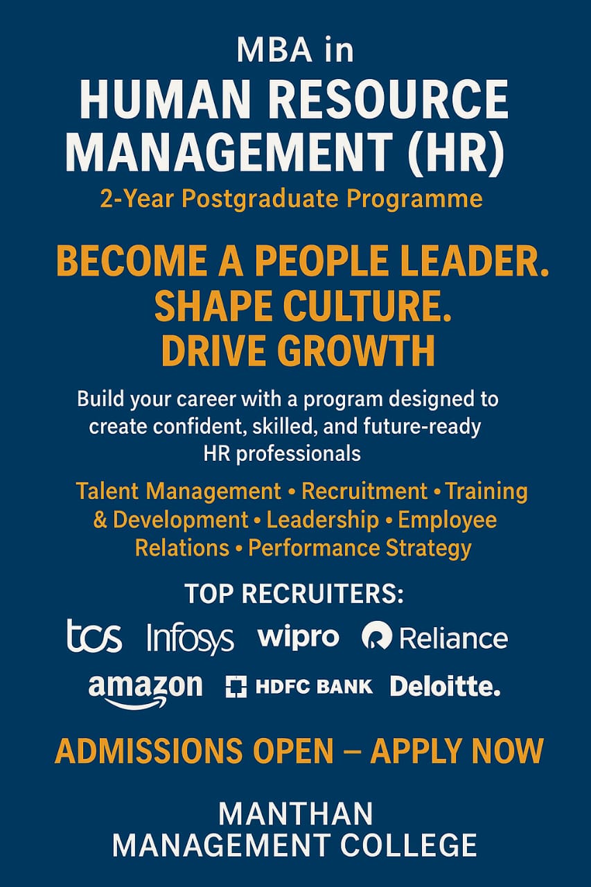 An MBA in Human Resource Management is more than just a degree—it is a journey toward becoming the strategic backbone of any organization. At Manthan Management College, the 2-year MBA in HR program equips students with the knowledge, confidence, and leadership skills required to manage people, culture, and performance in a fast-growing corporate world.